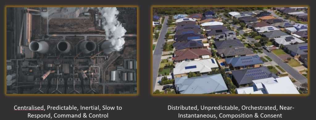 For more than 140 years the grid operated under one clear model: centralised generation from a handful of massive power stations, high-voltage transmission lines carrying power long distances, and predictable, heavy rotating machines that responded slowly to dispatch commands but provided mechanical inertia to the system. Everything flowed in one direction, top-down, command-and-control.