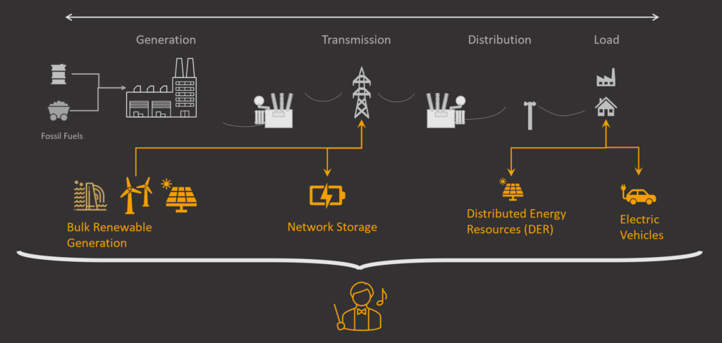 Picture the classic one-line diagram of the power system: generation on the left, transmission, distribution, and finally the load on the right. For a century that was a neat, linear flow, a few big power stations pushing electrons downhill to passive customers.